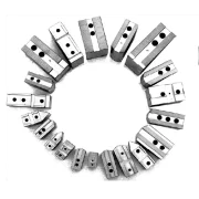 Grazie ad un parco macchine di grande precisione, in linea con le nuove tecnologie e ad un fornitissimo magazzino materiale, mettiamo a disposizione dei nostri clienti una vasta gamma di morsetti teneri in materiale C43 temprabile di nostra progettazione, sempre disponibili a magazzino. Inoltre, su richiesta del cliente, forniamo morsetti per portali, antropomorfi, basi statiche ed avvolgenti in C43 o altro materiale (in particolare Ergal) a disegno.